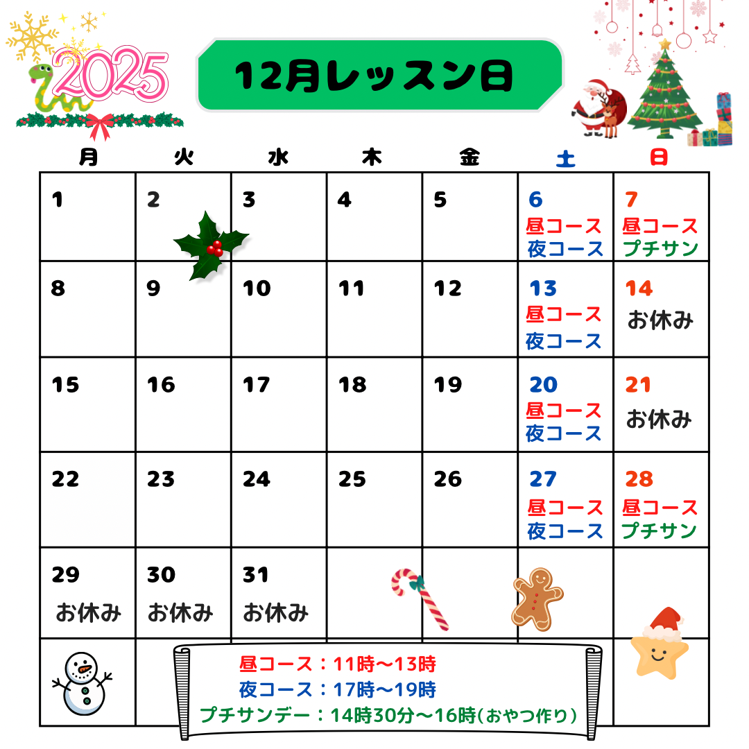 初回体験レッスンは下記「昼&夜レッスン(ごはん)」、「プチサンデーレッスン(おやつ)」よりお選びいただけます。